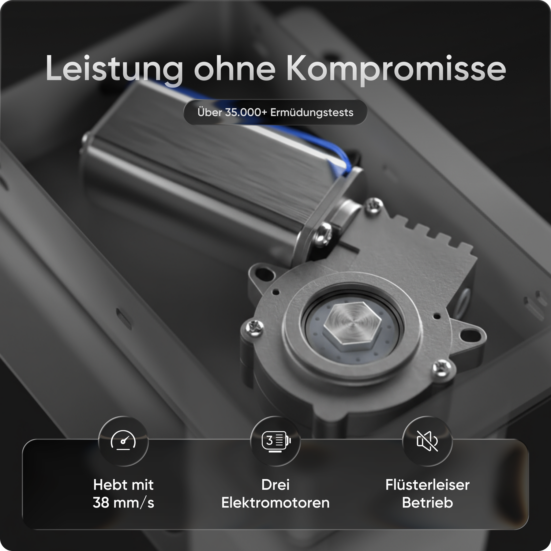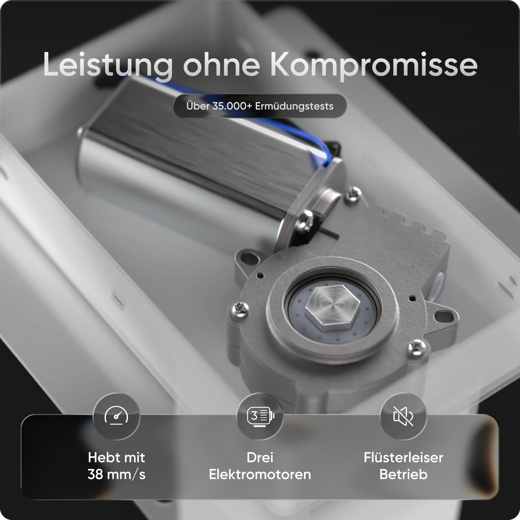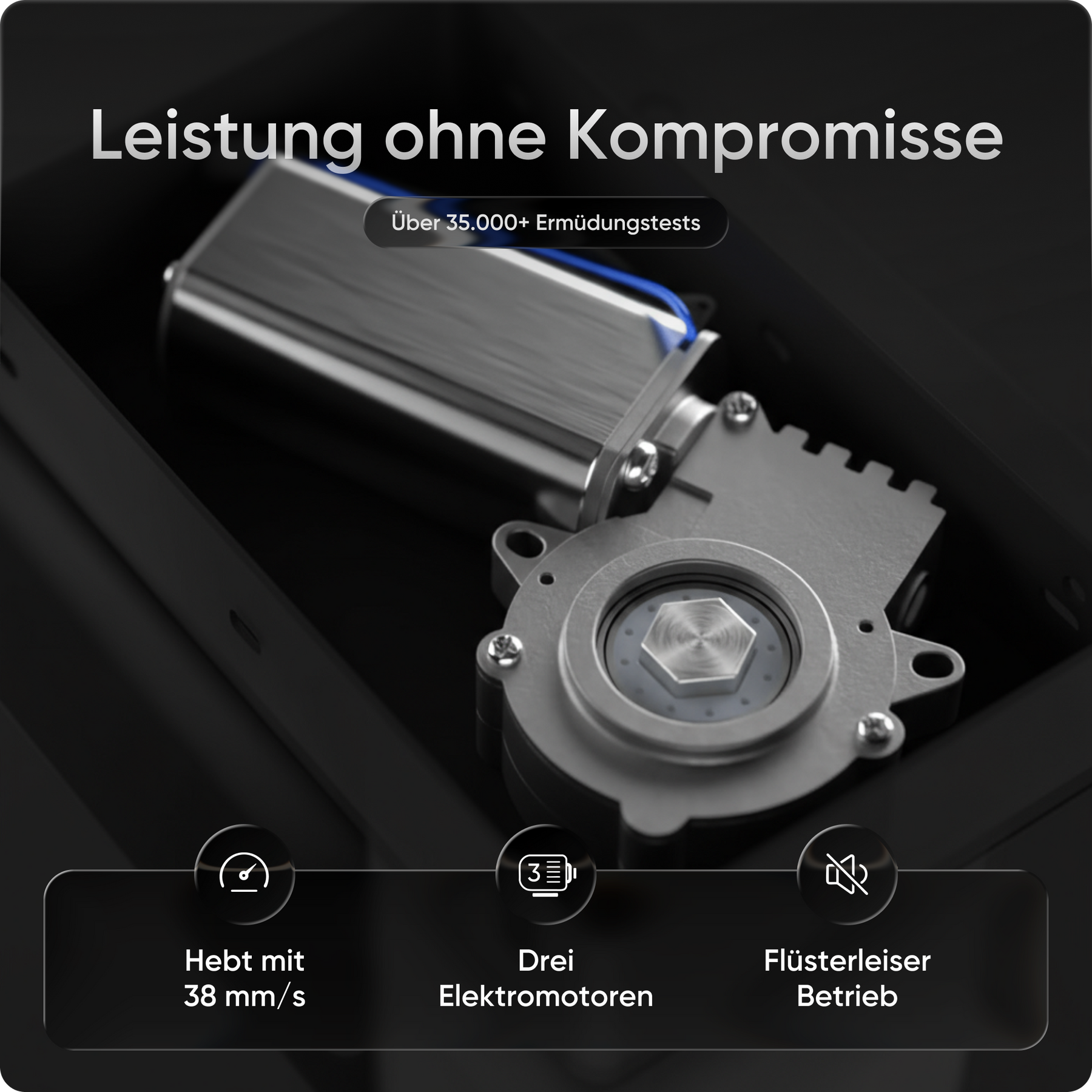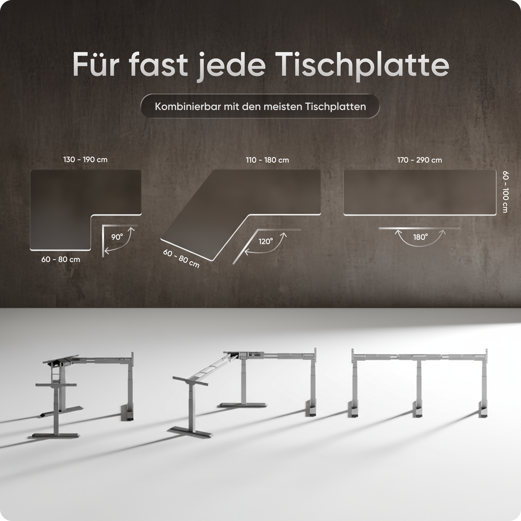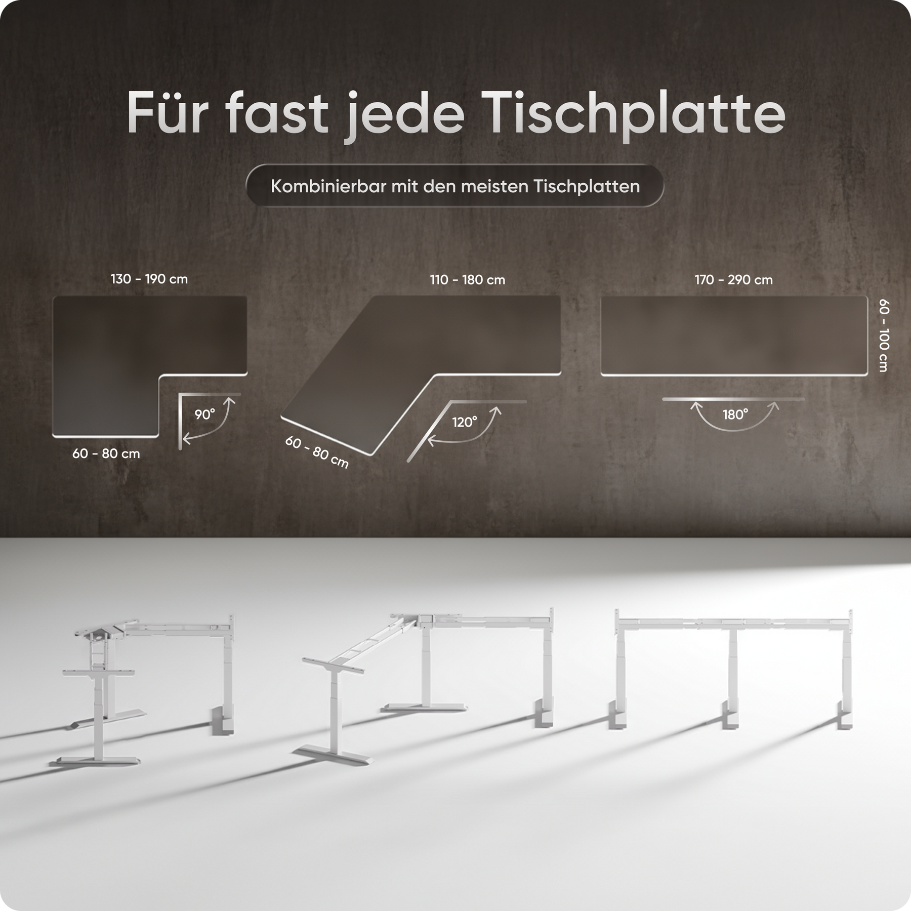 Mit einer Verstellhöhe von 58 bis 123 cm passt sich der Tisch ideal an jede Körpergröße an – von 1,50 bis über 2 Meter. Die leistungsstarken Motoren heben die Platte mit 38 mm pro Sekunde, 4x so schnell wie herkömmliche Modelle. Belastbar bis 150 kg und über 35.000-fach getestet.